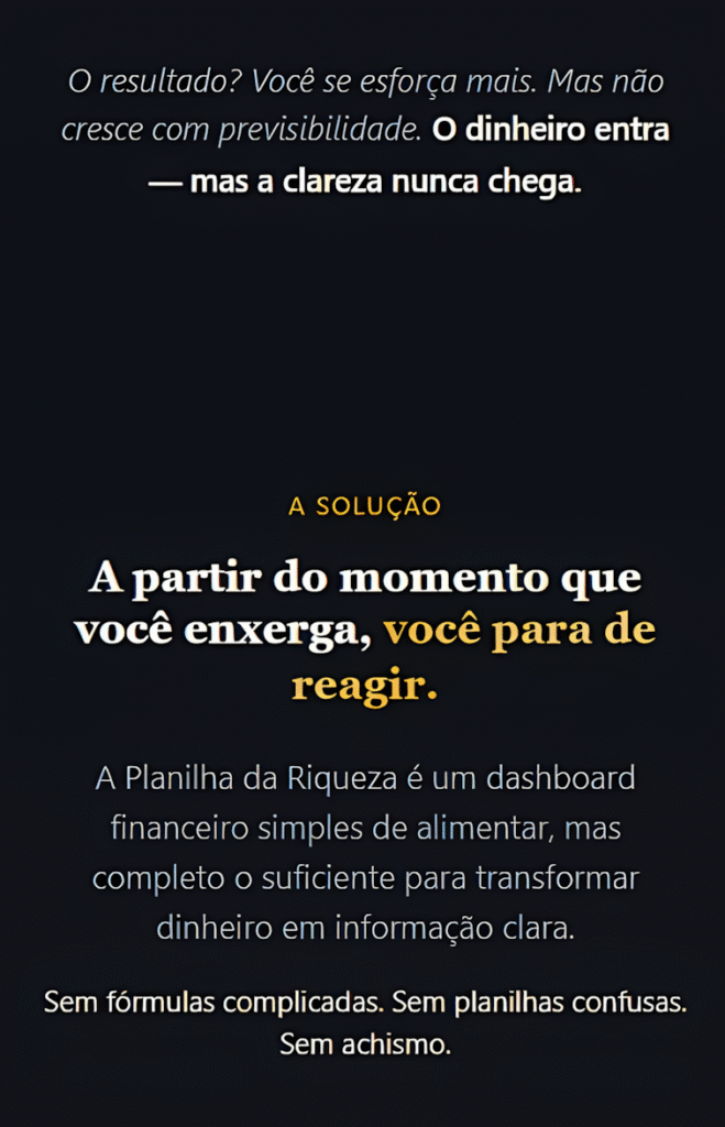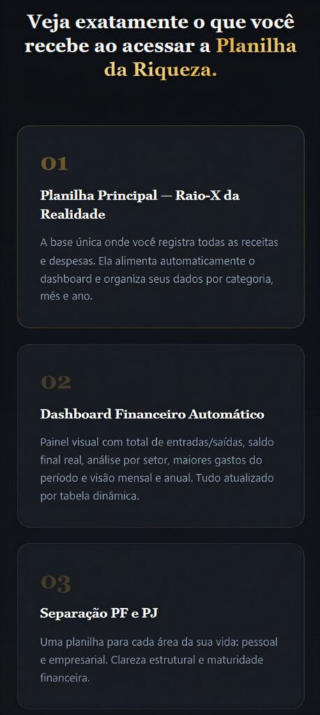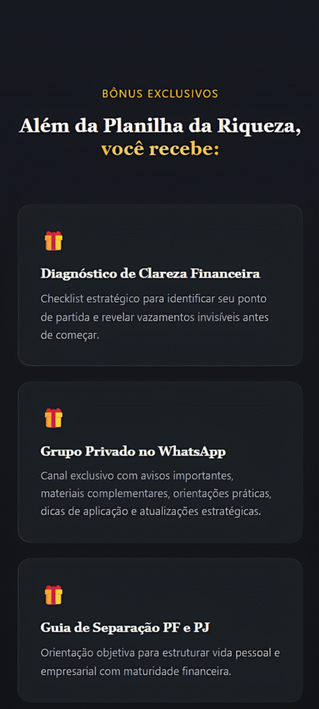Eu já faturava bem, mas não tinha clareza da minha margem nem regras de retirada. A Planilha da Riqueza escancarou meus números. Foi ali que eu entendi que decidir no feeling não sustentaria meu crescimento.