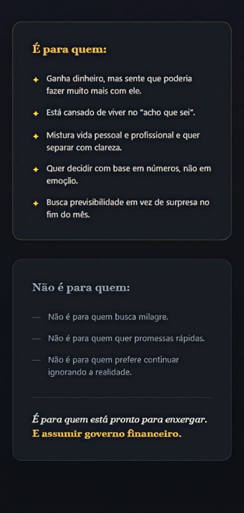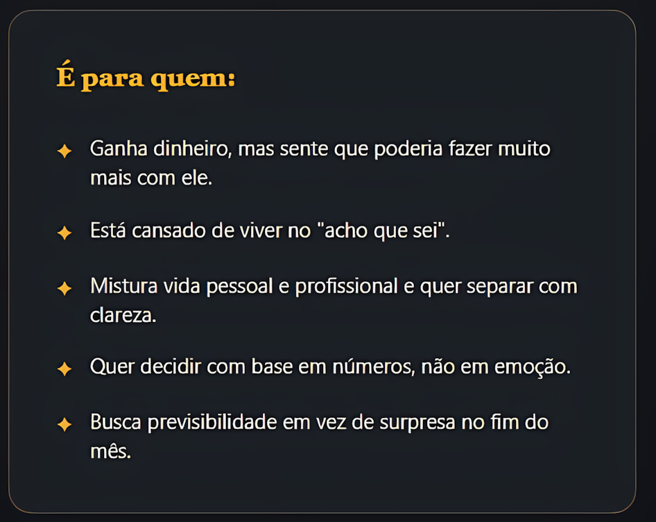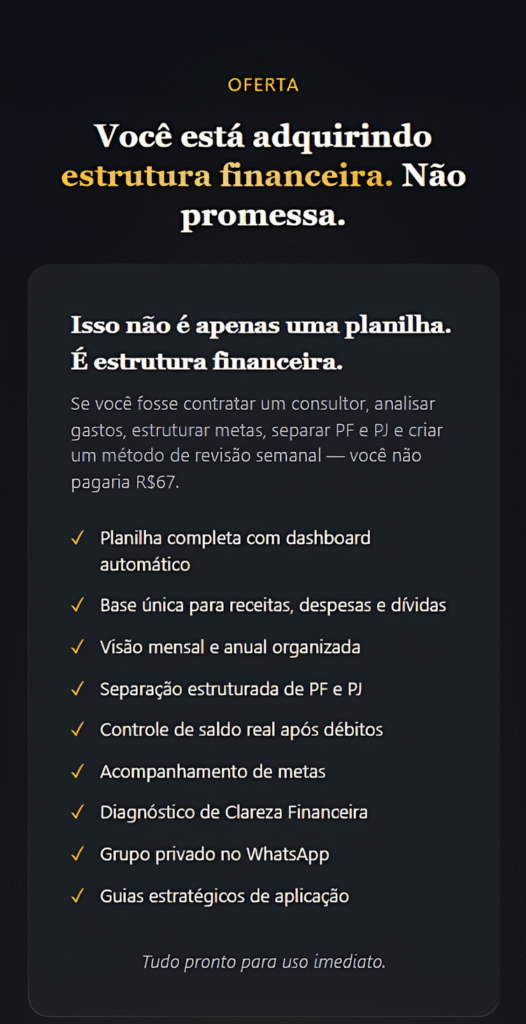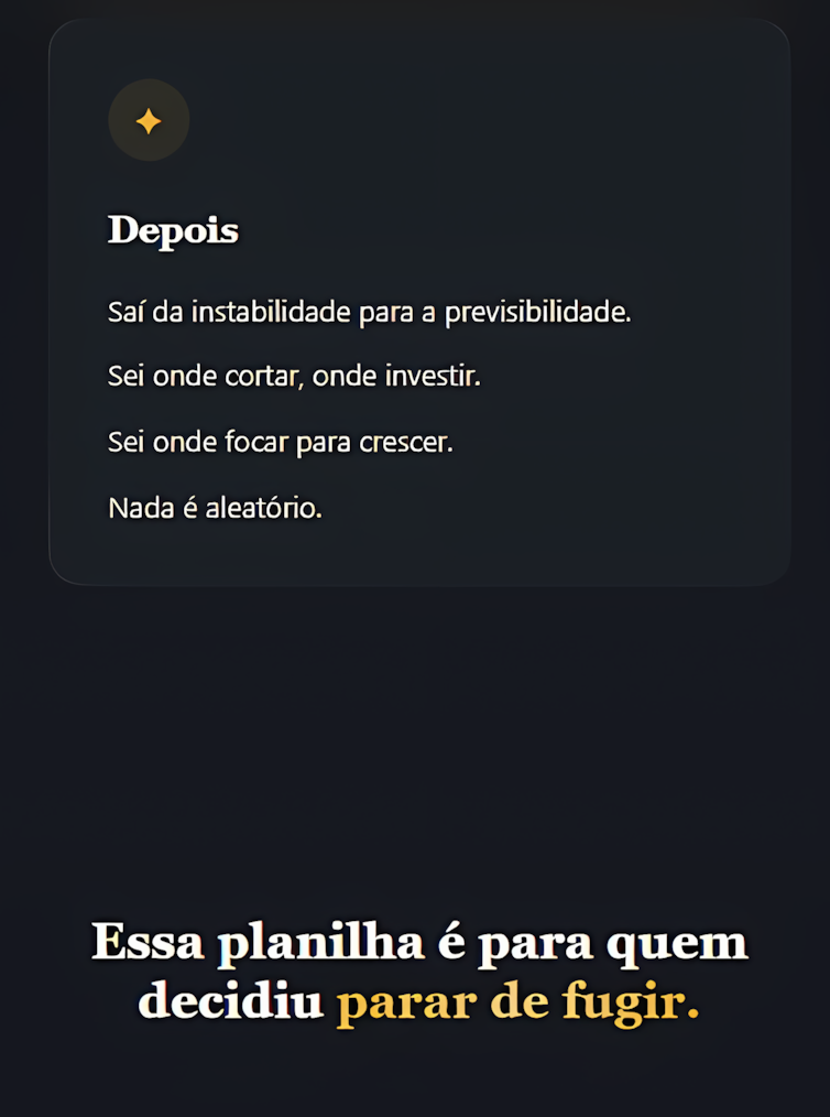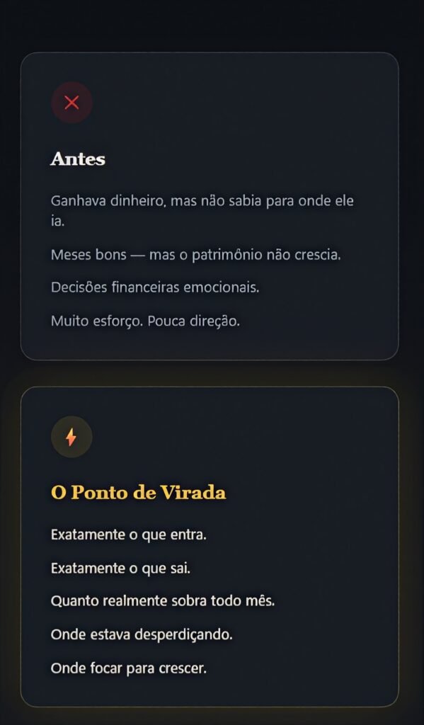 Eu trabalhava muito e faturava, mas não sabia exatamente quanto lucrava. A planilha me deu visão real da minha estrutura. Ela deixou claro que faturar não é o mesmo que construir base.”