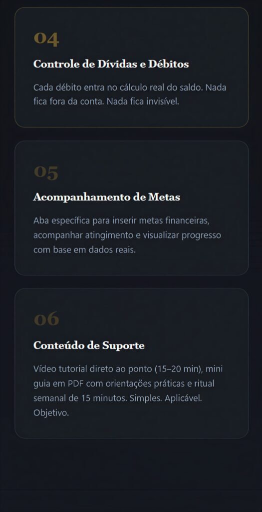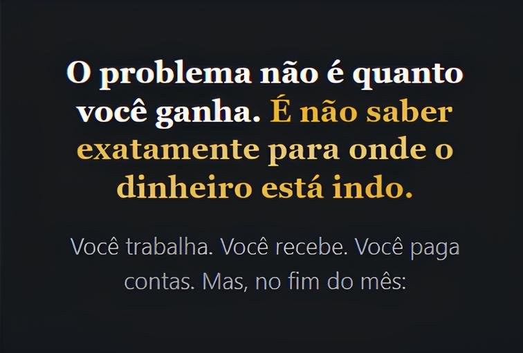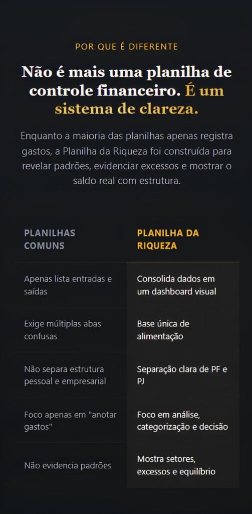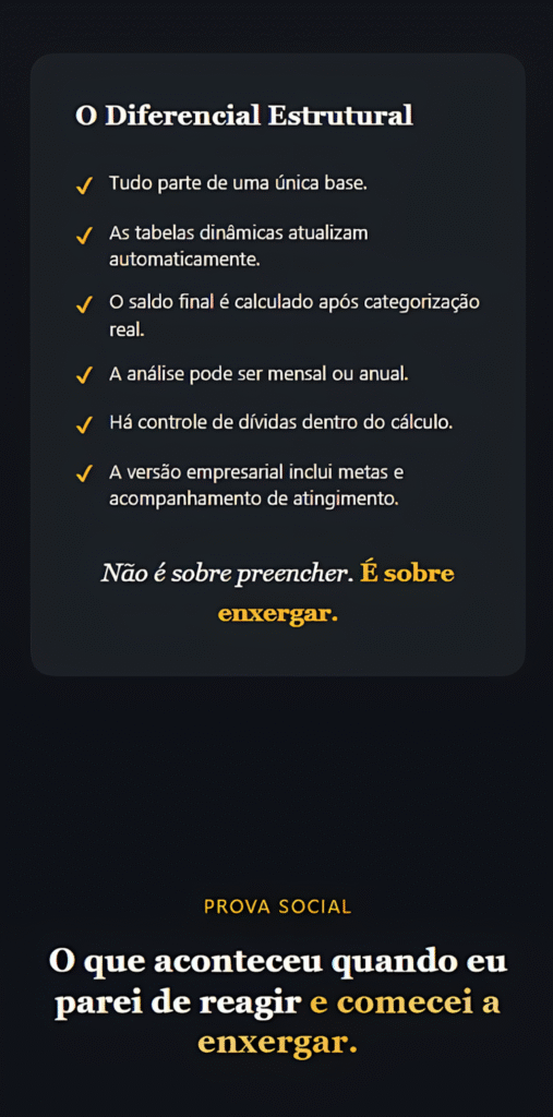 Essa planilha acabou com a dúvida, expôs a realidade e me mostrou exatamente quanto ganho, quanto gasto e quanto realmente sobra.