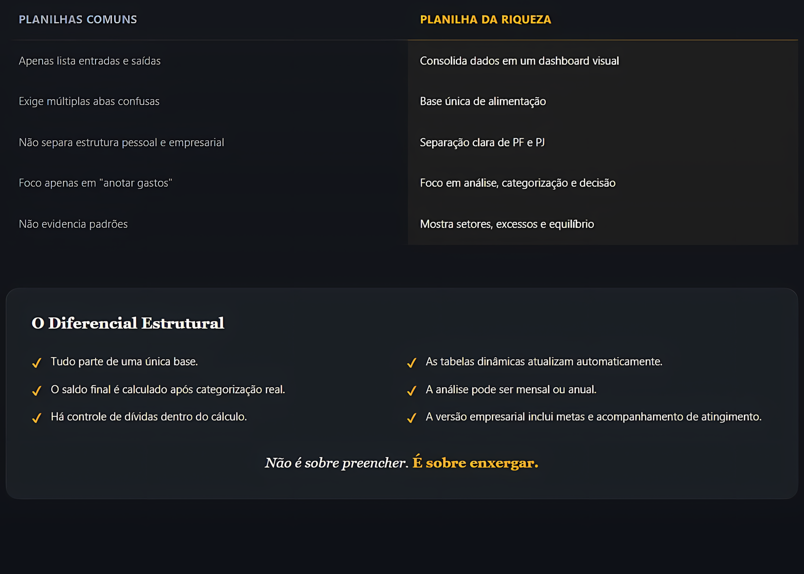 A planilha entrega clareza e estrutura.