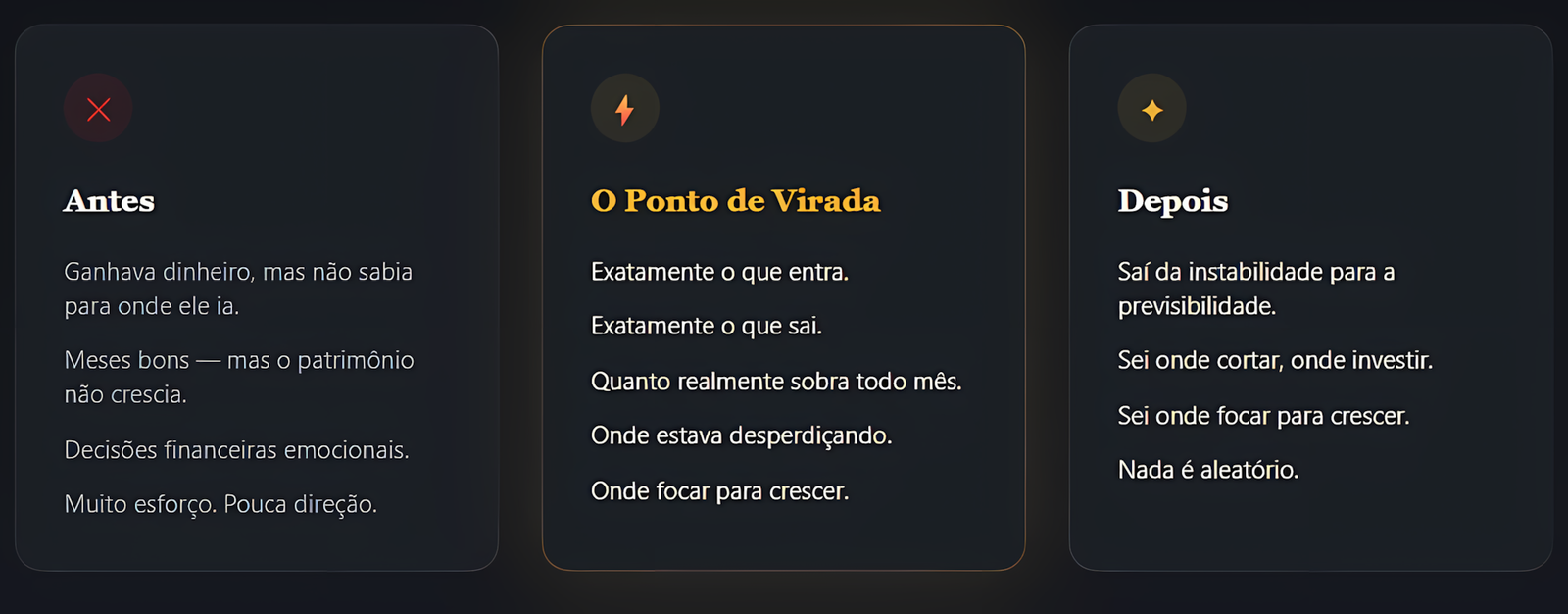 Cada depoimento mostra que entregamos na prática: clareza, constância e prosperidade com propósito.